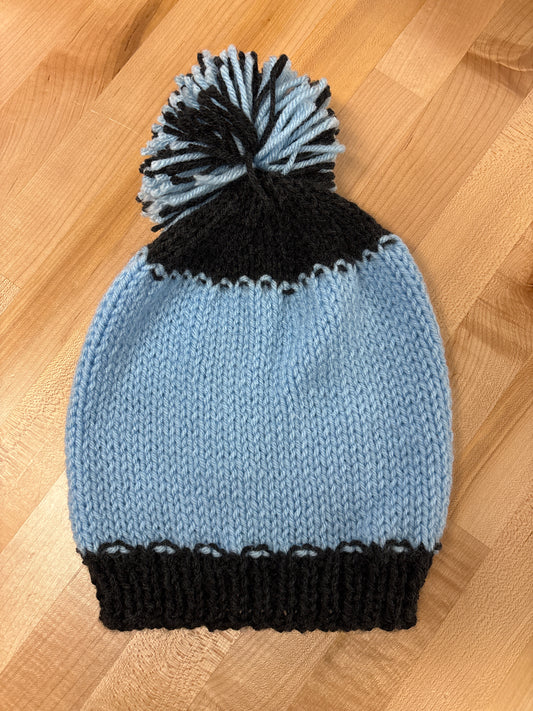 Hand knit winter hat with pom-pom